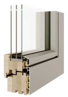 Bei diesem System werden zwei unabhängige Rahmen aus Holz und Aluminium eingesetzt. Eine wichtige Eigenschaft dieser Konstruktion besteht darin, dass problemlos zwei Farben realisiert werden können, wodurch Ihr Fenster innen und außen jeweils eine andere Farbe haben kann. Wir können mehrere Hundert Farben in vielen Schattierungen und Strukturen, einschließlich holzähnlicher Strukturen, einsetzen.